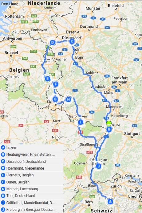 Fahrstrecke: Freiburg im Breisgau –> Breisach –> Luzern