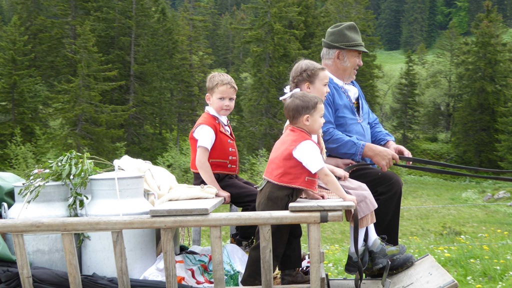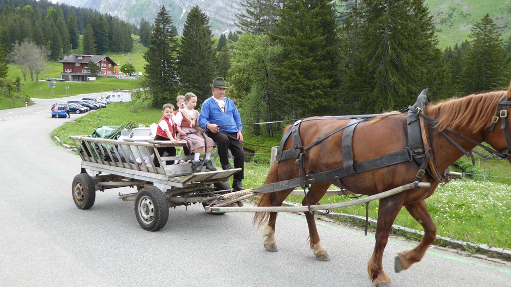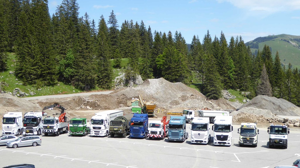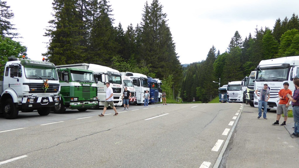 Kaum war das vorbei wurden wir auf lautes LKW Hornen aufmerksam. Eine ganze Karavane von Kapitänen der Landstrasse kam zum Spalierstehen auf die Alp.