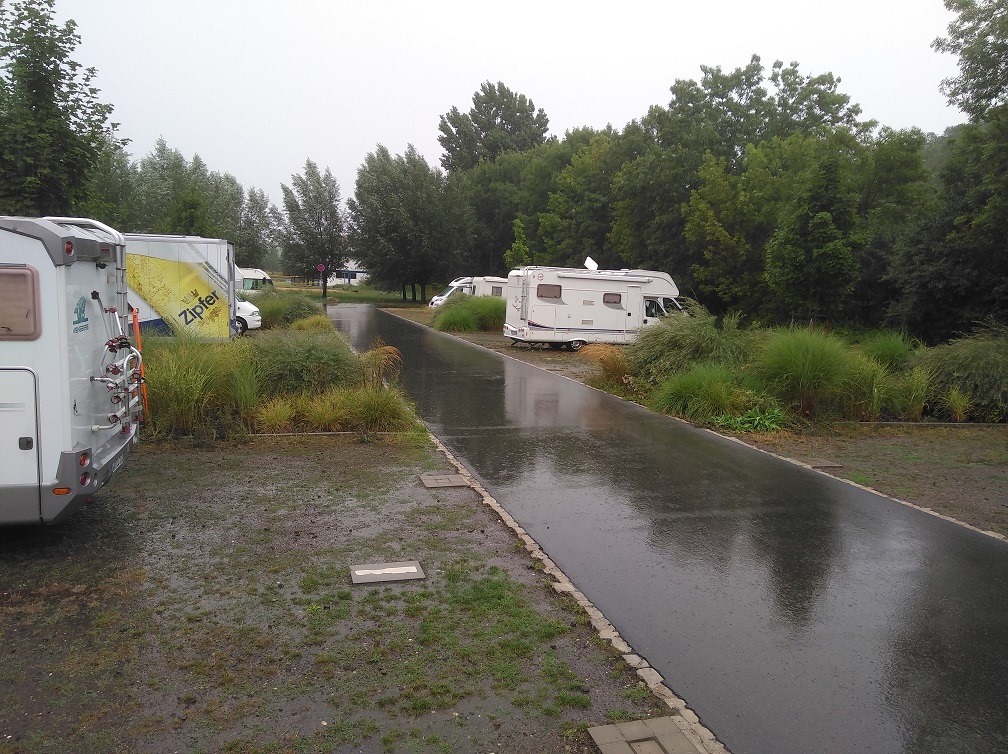 Ziel, der Stellplatz von der Gemeinde Schlitz. Dort war das Wetter dann auch viel besser. Bewölkt aber Regen los.