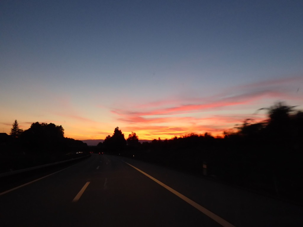 Auf der Raststätte Neuenkirch gab es ein Nachtessen. Gut genährt fuhren wir nach Murten. Der Himmel zeigte uns ein traumhaftes Abendrot.