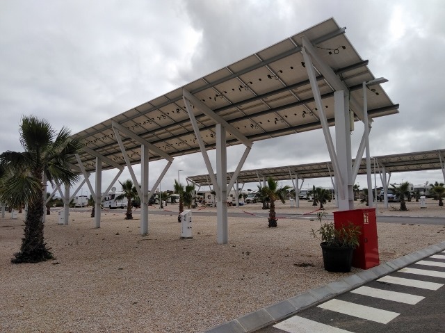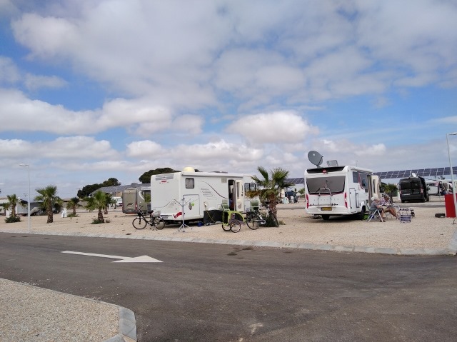 Die Situation auf dem Platz sieht wie folgt aus. Es stehen etwa 25 Wohnmobile hier.