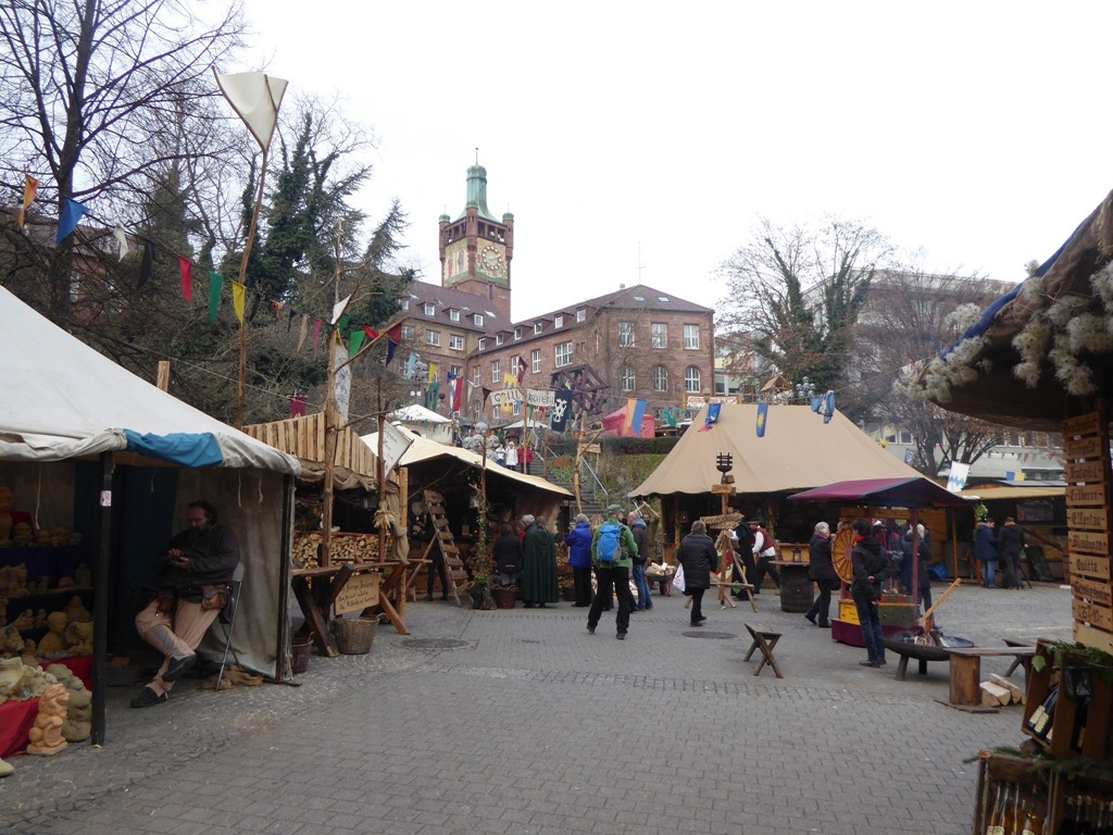 Aber erst ging es jetzt an dem Fluss Enz entlang ins Zentrum. Der Weihnachtmarkt war schon offen ab 10.30  Uhr.