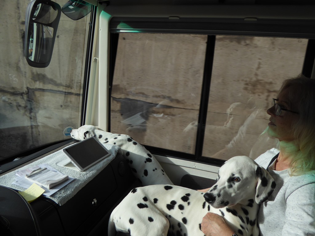 Rund um den Stellplatz lag viel Müll rum. Zum Gassi gehen nicht so prickelnd, überall etwas zum Fressen, ungeeignet für die Dalmis. Dabei vergessen sie ihr morgendliches Geschäft zu machen.