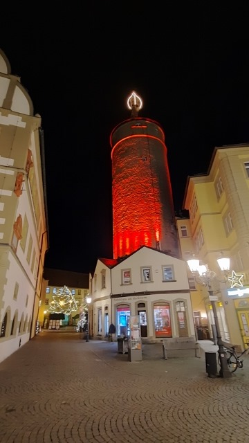 Aus dem Marktturm wird Bayerns grösste Adventskerze.