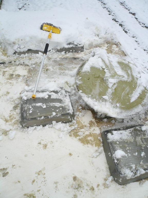 Ich war auf dem Standplatz und habe das Fahrzeug vom Schnee befreit. Jeder der sein Fahrzeug in einer schön geheizten Garage hat, wird die folgenden Bilder schrecklich finden. Wir haben uns bewusst für einen Platz im Freien entschieden weil wir so jederzeit das Womo benutzen können. Im Sommer verbringe ich viel Zeit auf dem Standplatz und im Winter ist es sehr romantisch wenn alles verschneit ist, drinnen zu sitzen, wilde Hasen und Reh zu beobachten und ein gutes Kaffee zu trinken. So bald der Frühling kommt wird alles sauber gereinigt und unser geliebtes Fahrzeug sieht wieder fast wie Neu aus. Möglicherweise bekomme ich im Frühling einen gedeckten Platz auf dem Bauernhof. Es wird ein Umbau geben und dann kann ich das Wohnmobil unter ein Vordach stellen.
