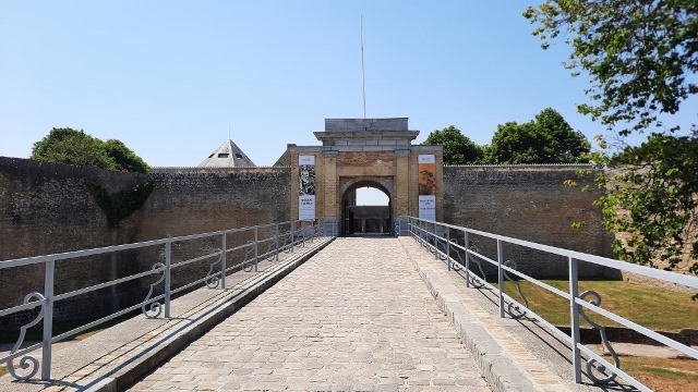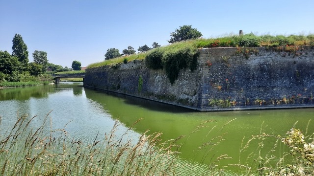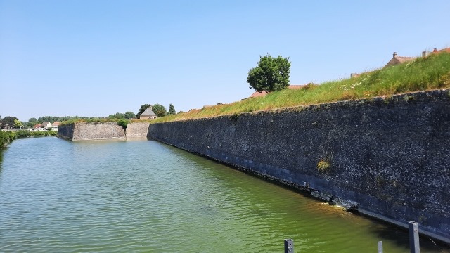 Der Ort ist der einzige in Frankreich mit einer befestigten Stadtmauer die vollständig vom Wasser umgeben ist. Ein gut erhaltenes sternförmiges Werk