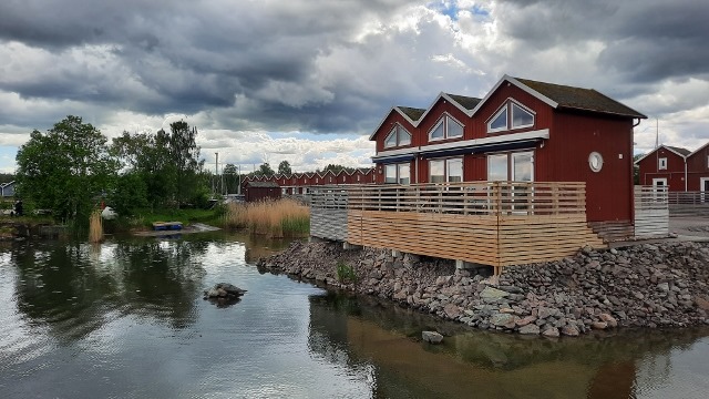 Nun sind wir in Mellerud angekommen. Der Hafen ist gross. Viele Bootsplätze sind reserviert für die Weekend Häuser.