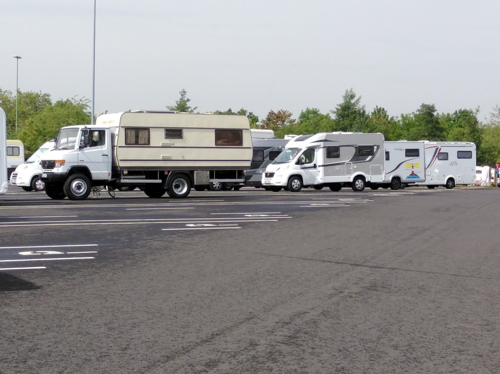 Bevor es aber soweit ist, laufen wir über den grössten Stellplatz in Europa, den P1 am Messegelände Düsseldorf.