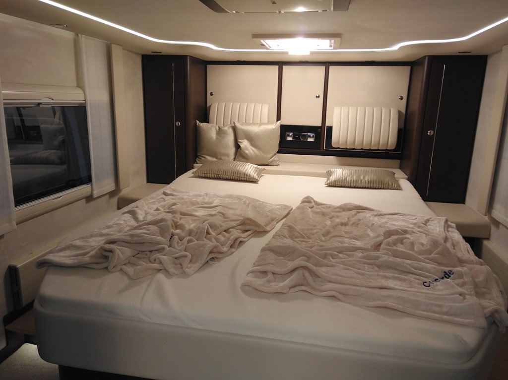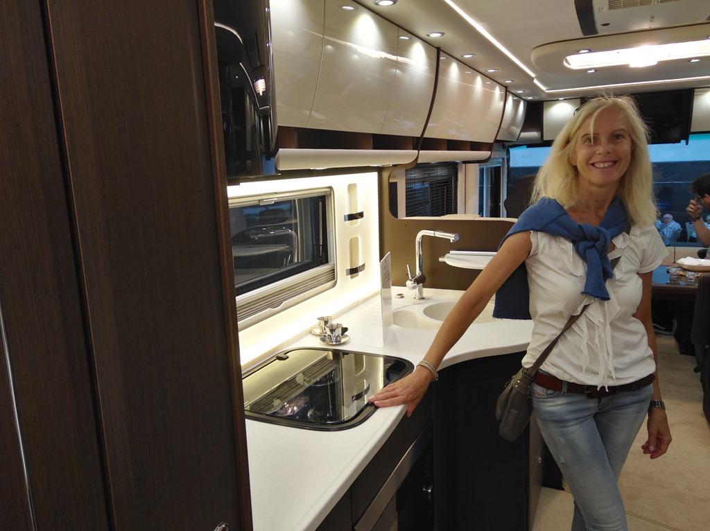 Ein wirkliches Verkaufsgespräch gab es nicht. Für beide Seiten war alles klar. So haben wir uns bei einem Kaffee über kleinere Details unterhalten. Und dann kam der grosse Moment. Gegenseitig unterzeichneten wir den Vertrag für den kauf unseres neuen Reisemobil. Mit einem Glas Sekt besiegelten wir die Zusammenarbeit. Danach begleitet Frau Baumgartner uns zu den Ausstellfahrzeugen. Dort konnten wir uns nochmals ein Bild über unser neues zu Hause machen.