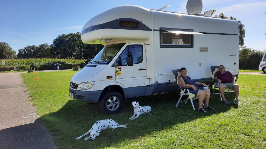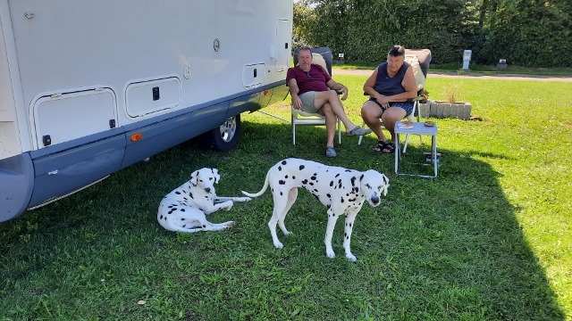 Aber alles der Reihe nach. Der Tag beginnt ganz gemütlich auf dem Stellplatz mit unseren Nachbarn Karin und Michael. Erst Kaffee trinken, dann Relaxen. Haben die Dalmis eine neue Familie gefunden?
