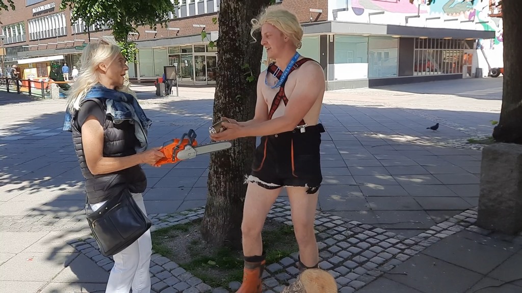 Und plötzlich stehen wir mitten in einem Junggesellenabschied. Sonja wurde als Opfer auserkoren und musste Holzsagen.
